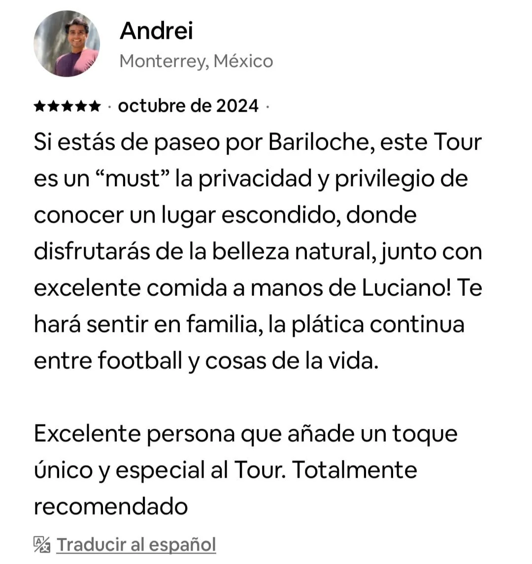 Excursiones unicas, tenemos paseos exclusivos por rincones de la cuidad al que al turista le cuesta llegar, la idea es mostrar espacios poco conocidos y tranquilos para disfrutar de Bariloche de una forma unica con catering incluido.